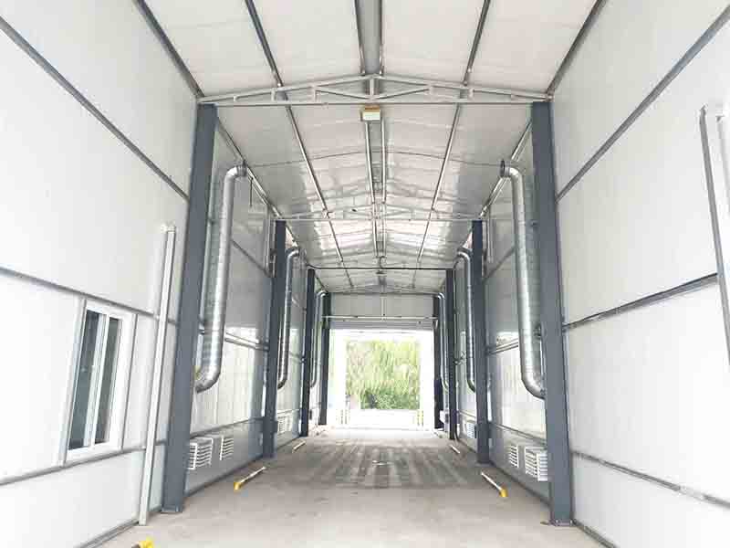 • 車輛烘干系統?烘干房兩側建有耳房,便于熱風流通循環。車輛洗消一體機主要是針對養殖場內運輸車輛,進行徹底的清洗、消毒、烘干。防止車輛帶來的病原體擴散,達到預防及防治的目