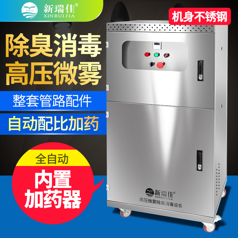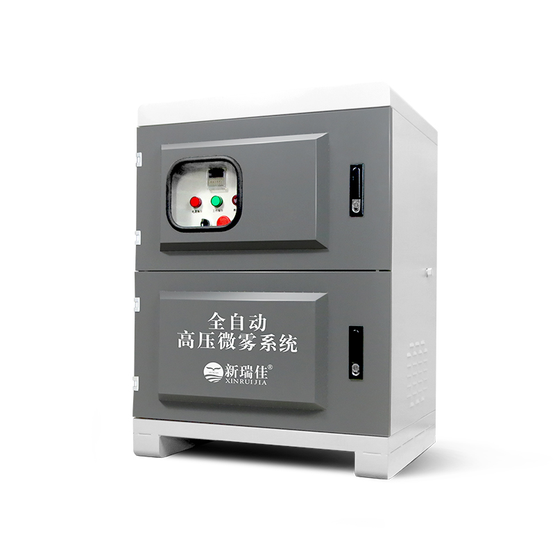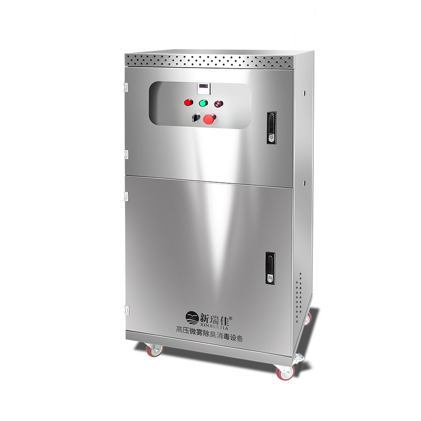 • 新瑞佳-霧化噴淋機組主要由霧化器、控制系統(tǒng)、藥液箱和高壓泵組成,在高壓泵的作用下,除臭液經(jīng)耐高壓管道系統(tǒng),通過霧化器形成1-10μm的極細除臭水霧噴出。除臭粒子充分