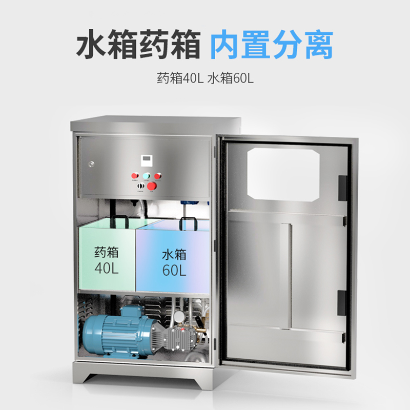 • 河南新瑞佳實(shí)業(yè)有限公司養(yǎng)殖場(chǎng)噴霧消毒專用于除臭、消毒、殺菌、加濕,設(shè)備采用高品質(zhì)高壓泵浦,壓力大,動(dòng)力足,使消毒液噴灑的范圍更廣,面積更大,持續(xù)時(shí)間更長(zhǎng),不留死角,養(yǎng)殖場(chǎng)噴霧消