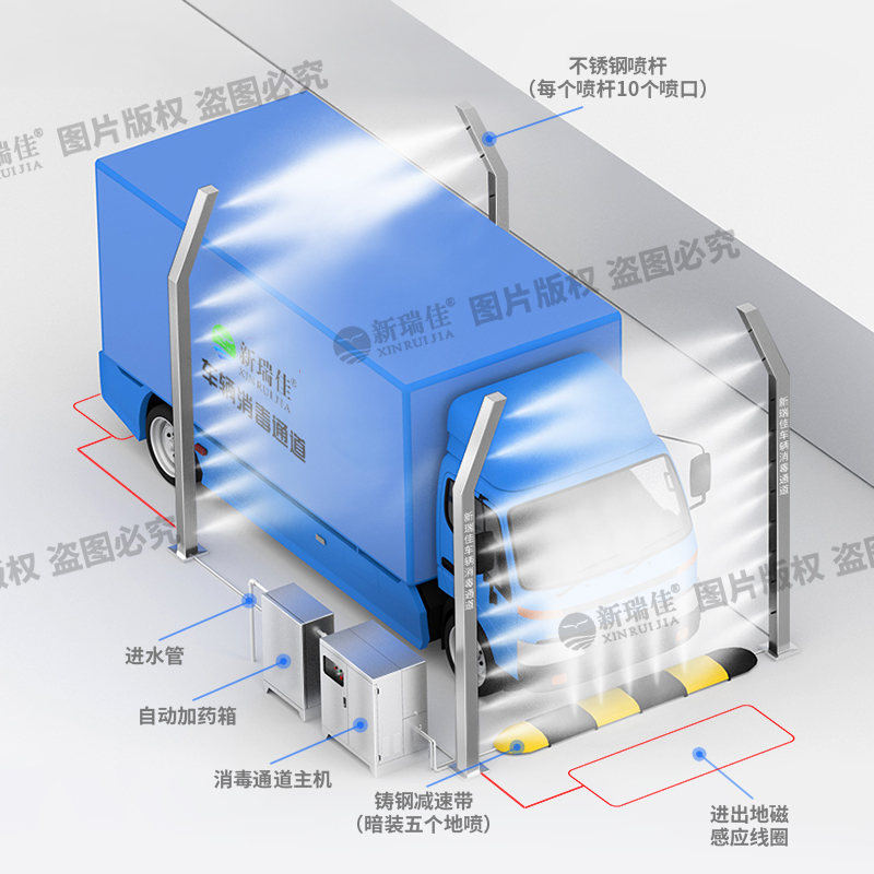 • 新瑞佳全自動(dòng)車輛消毒通道用于:養(yǎng)殖場(chǎng)、食品加工廠以及屠宰場(chǎng)、防疫檢查站、飼料場(chǎng)等。