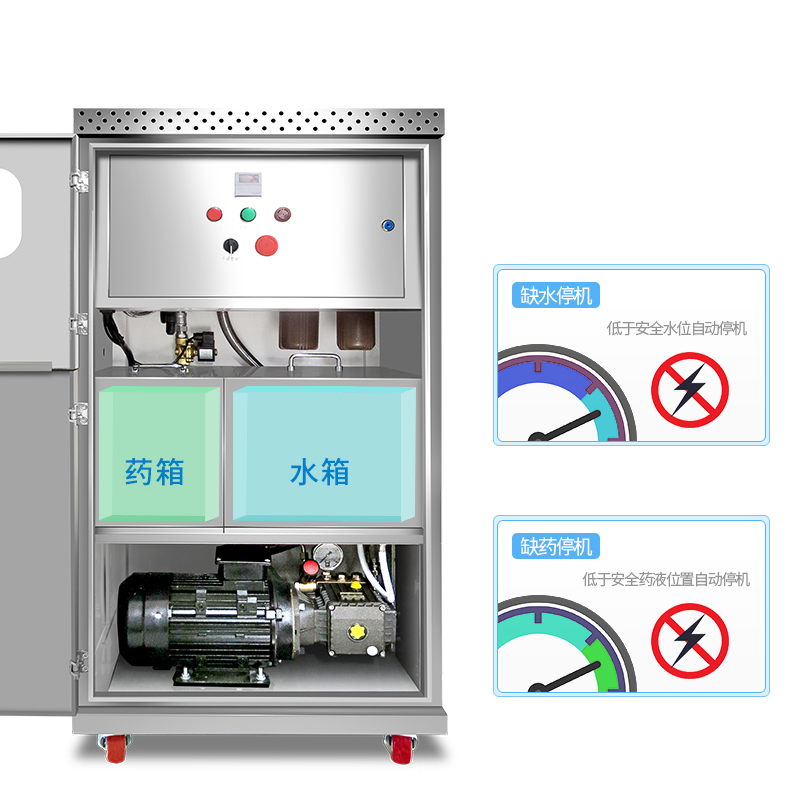 • 新瑞佳-霧化噴淋機(jī)組主要由霧化器、控制系統(tǒng)、藥液箱和高壓泵組成,在高壓泵的作用下,除臭液經(jīng)耐高壓管道系統(tǒng),通過霧化器形成1-10μm的極細(xì)除臭水霧噴出。除臭粒子充分