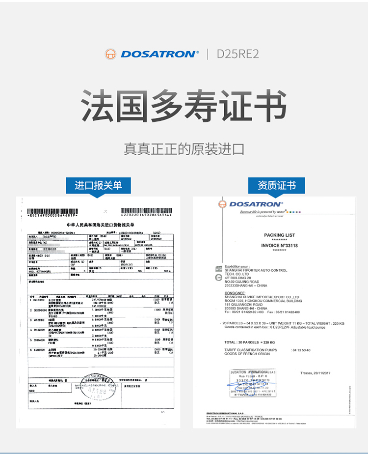 在DOSATRON公司出廠的包裝上會表示成D25RE2VF,在泵體上只會標識D25RE2