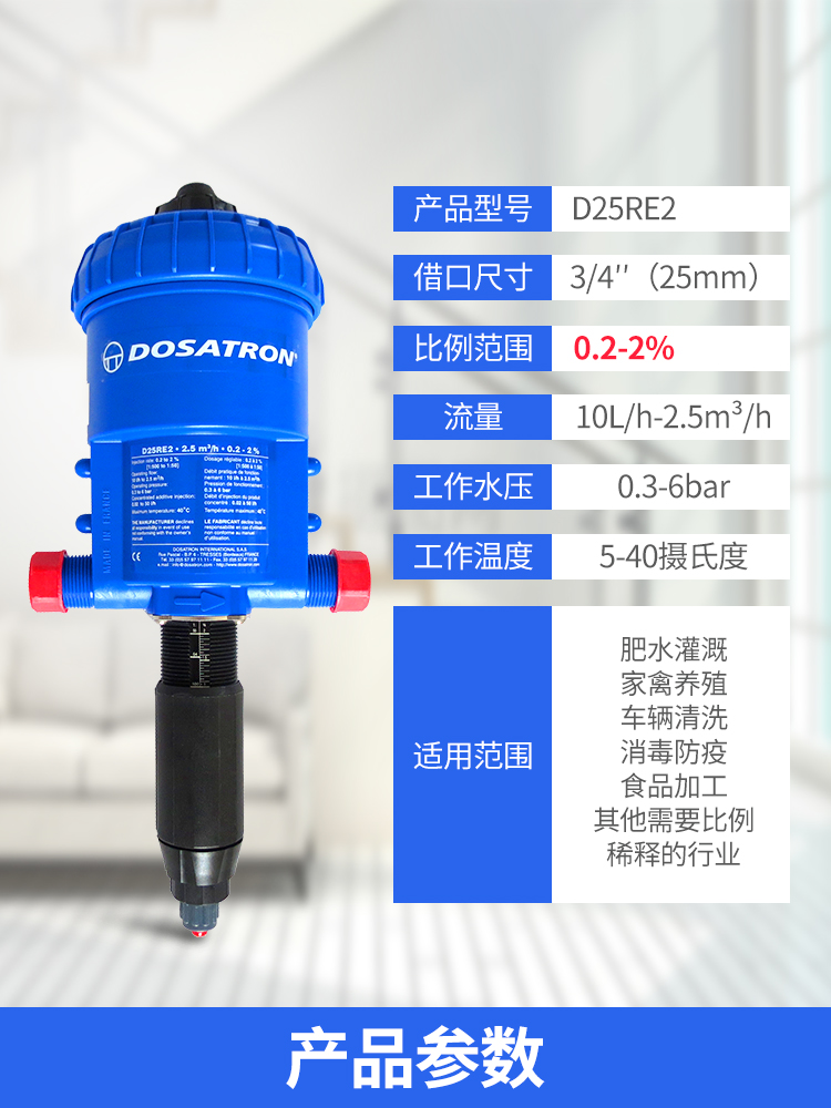 法國原裝進口DOSATRON品牌/多壽品牌水動力比例加藥器/水力比例稀釋器D25RE2應用場合